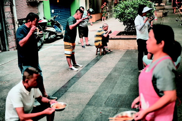 清晨,微光初现。无论县城小镇,还是大街小巷,冒着热气的店铺全是桂林米粉店。店通常不大,两个门面稍显大方,一个门面也可操作,且多临街而开。桂林天气多湿热,于是吃米粉者喜欢把桌子搬到店外马路边,低低的四方桌一字排开,矮矮的小木凳围成一圈。吃桂林米粉者大多熟悉,偶尔碰到不认识的,围在一桌一同吃过米粉,打声招呼便不再是陌生人了。米粉在筷尖翻动,映着一张张朴实生动的脸庞;汤在舌尖轻轻流过,酸的辣的美味浸入肺腑,更抚慰着桂林人的精气神。每天早上,美滋滋地吃上一碗米粉,然后擦着火辣辣的嘴巴,顿时神清气爽起来。