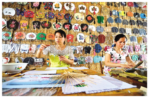 图③:工人们正在制作团扇 (阳成斌 供图)