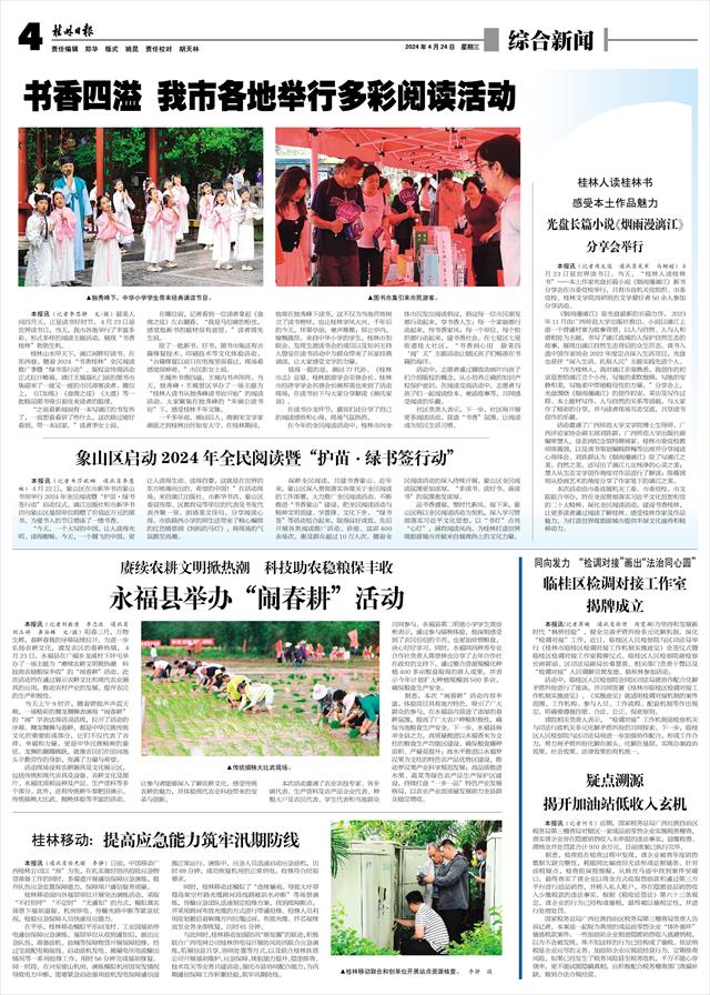 本报讯(记者李思静)4月23日,2024“书香桂林”全民阅读推广季暨版权宣传周、“绿书签行动”系列活动正式启动。市委常委、宣传部部长李军出席活动并宣布启动。