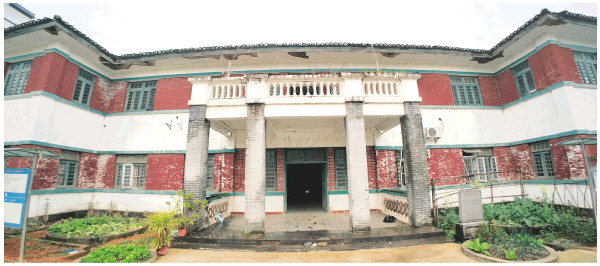 走进位于雁山镇原桂林市农业科学院办公地,很快便发现了这栋颇具民国特色的建筑,建筑坐北朝南,东西长30米,南北宽15米,通高约10米。平面呈“H”形,为二层砖木结构,一楼置门廊,二楼设露台。由于原单位已不在此办公,这栋楼房目前处于闲置状态,建筑的整体虽完整,但已有多处明显破损。在建筑入口一侧立有“桂林市文物保护单位”石碑,上面标注此建筑为“民国广西大学分部旧址”。