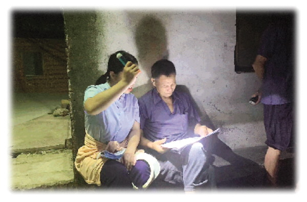 ▲桂林银行工作人员在村民晚上闲暇时上门办理业务。(桂林银行供图)