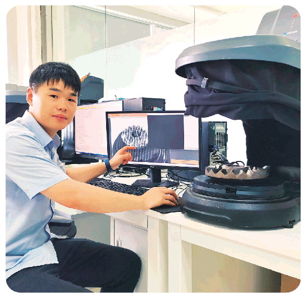 与此同时,冯云团队还开展了三维扫描测量仪产品研发工作。“该类型产品技术难度比一键式图形测量仪更大。我公司也是目前国内唯一研发生产台式三维扫描测量仪系列产品的厂家。”他说,它可以测量三维不规则物体。在工业领域,通过对产品进行三维扫描可获得准确数据,用于检测产品缺陷和不良品,从而帮助工业企业更好地进行产品设计和调整,提高产品质量;在医疗领域,可用于医学诊断和治疗,如用于制作个性化的义肢和假体,提高患者的生活质量;在文化遗产保护领域,还可用于对文物进行数字化保护。