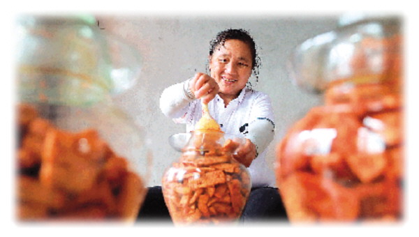 把调味完成的油炸豆腐装坛。 记者李忠波 秦丽云 摄