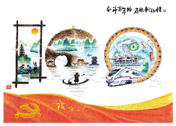 图③:桂林石画作品《奋斗百年路 启航新征程》。 记者蒋璇 翻拍