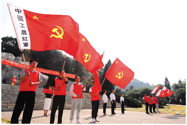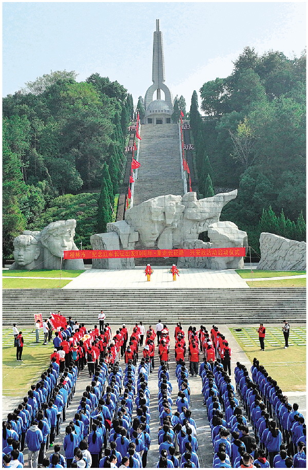 11月12日上午,“纪念红军长征出发九十周年·重走长征路”兴安段活动启动仪式在红军长征突破湘江烈士纪念碑园举行。 (本版配图均由记者李忠波摄)