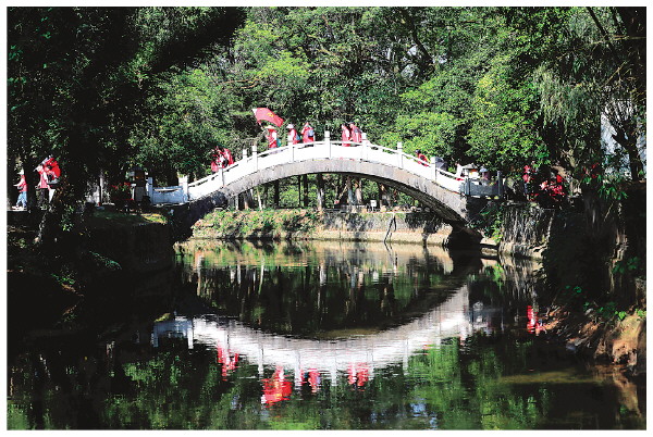 “湘桂古道红军路,一步一尊英雄躯;湘桂古道红军路,一草一木一忠魂;湘桂古道红军路,一山一石一丰碑;红军血染湘江渡,江底尽是忠烈骨;三年不饮湘江水,十年莫食湘江鱼……”行进的队伍里,林升和牵着“小红花”的手,一边向前一边教她唱这首桂北民谣,两人的歌声一高一低,就像号子一样为队伍行进打着节拍,初冬的阳光照在两人身上,把他们的影子拉得很长很长。