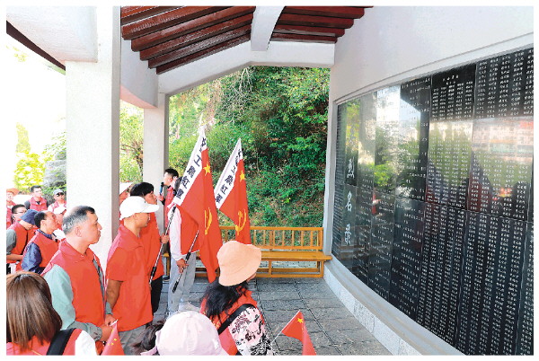 “墙面上的每一个名字,都是当年在这片土地上抛洒热血的英雄。”碑园工作人员指着石壁向队员们介绍,1934年10月中旬,中央红军从江西于都县集结出发,开始长征。漫漫征途中,平均每公里就有3名赣南子弟倒下,他们当中大多数人几乎没能留下任何信息,他们的家人在多年后等到的只有一张薄薄的烈士证明书,上面写着一句共同的标注:北上无音讯。