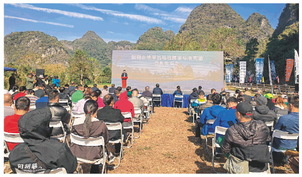 ◤11月29日,阳朔县在高田镇龙村岩邦户外营地举办《体育场地使用要求及检验方法 第12部分:自然攀岩场地》国家标准实施信息发布会暨第十六届阳朔攀岩节开幕式。