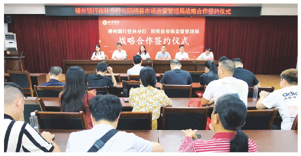 ▲阳朔县市场监督管理局与柳州银行桂林分行举行战略合作签约仪式。