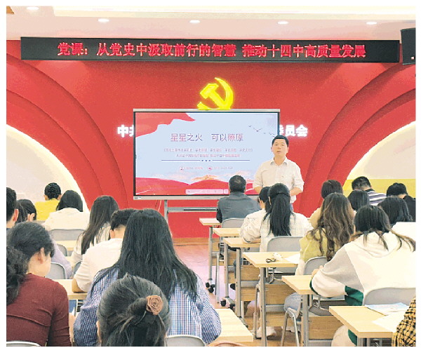 ▲桂林市第十四中学陈现梅老师上党课现场。 (市十四中学供图)