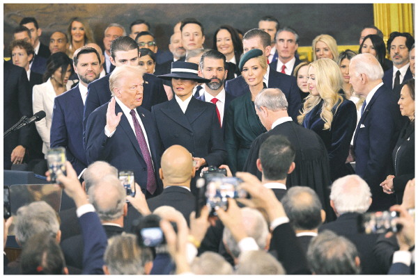 美国东部时间20日中午,特朗普在国会大厦圆形大厅宣誓就任美国第47任总统,时隔四年后开启第二任期。分析人士认为,特朗普当天的就职演讲以及发布的新政策具有“美国优先”特点和单边主义色彩。围绕就职典礼的一系列事件再次凸显美国政治极化,特朗普上台后美国社会撕裂恐将进一步加深。