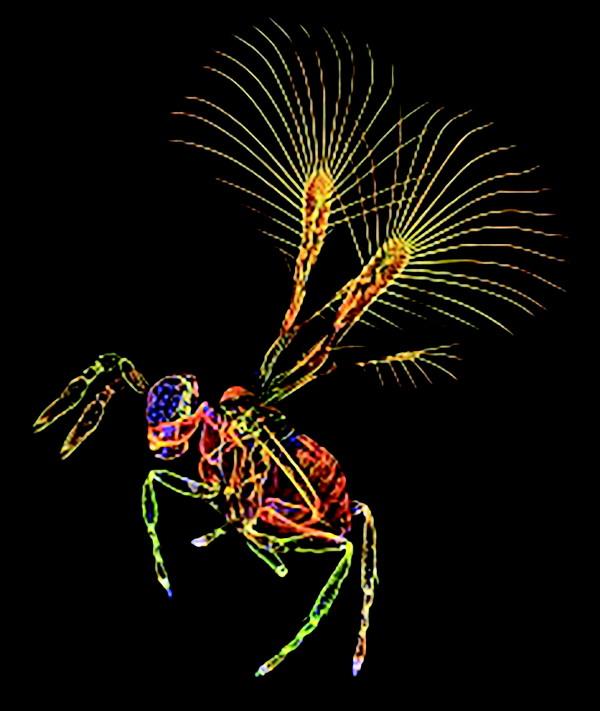 世界上最小的昆虫之一、长着羽毛状翅膀的微小寄生蜂。