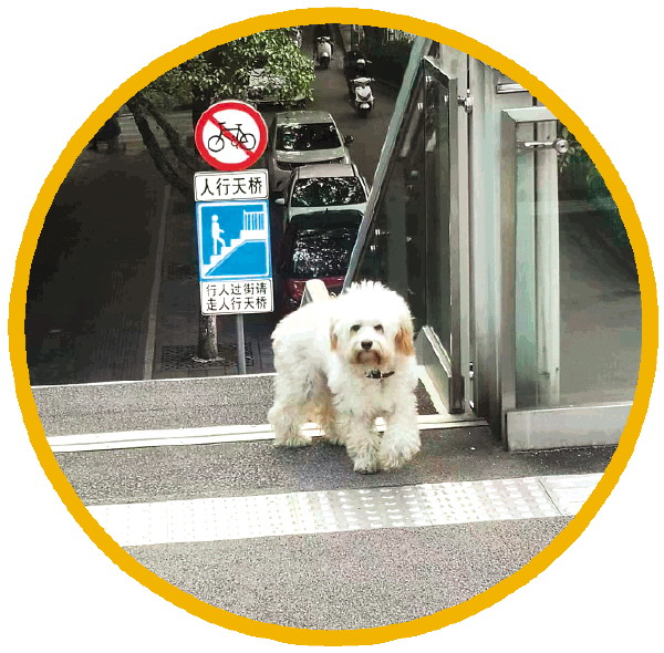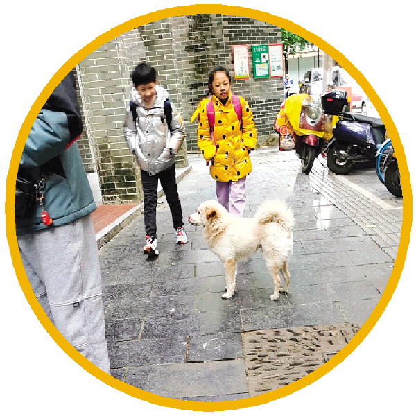 12日上午8时05分,在市区东华路一家米粉店门口,一只没有牵绳的米白色的小狗站在人行道上,附近就是中华小学,时值上学高峰期,有不少小学生路过此地。记者观察了片刻,只见一名中年男子打包好米粉走出米粉店,然后招呼那只小狗上了电单车离开。下午4时许,市区三里店广场的人行天桥上,一只未牵绳的白色小狗在天桥跑来跑去,记者观察了10多分钟,并未见到狗的主人,这只小狗一直在来回奔跑。