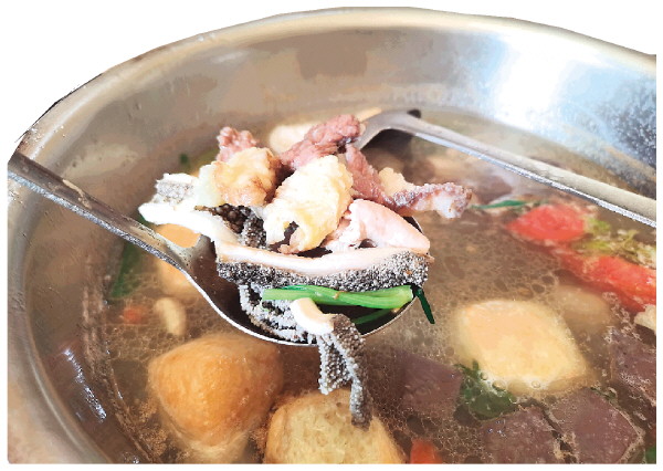 在临桂区,很多人首推金山路的朱记秧塘牛八宝。据该店老板娘蒋春华介绍,她经营牛八宝已有20多年,有清汤、酸辣和麻辣三种口味,其中清汤口味颇受欢迎。“我们每天用三四十斤新牛骨,花六七个小时熬两大桶原汤,里面只放点盐,再无任何其它调料,突出原汁原味。清汤锅就是在牛骨汤里加几片番茄、蘑菇、油豆腐皮,这样烫的牛八宝吃起来清甜,特别适合老人和小孩。”蒋春华表示,除了汤好,食材的新鲜也一样重要,她儿子每天早上6点多就会去西门市场采购牛肉和牛内脏。