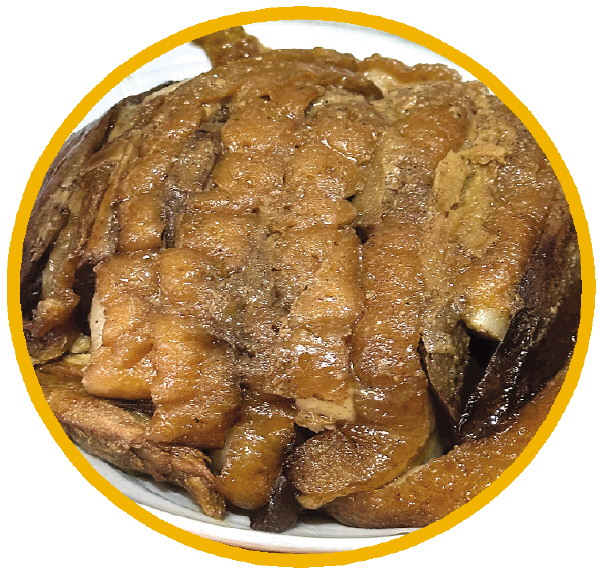 除此之外,还有平乐县的双扣也叫夹心扣,跟荔浦扣肉不同,平乐双扣的五花肉切片更加厚实,每片五花肉从中间切开不切断,芋头片夹在其中更容易吸收五花肉的油和肉味。
