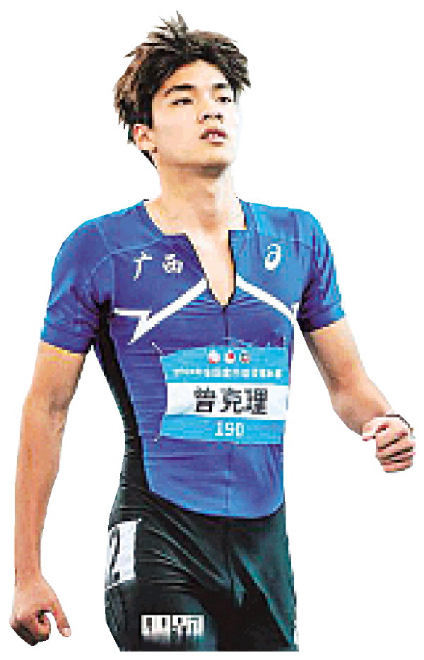2006年9月出生于南宁的曾克理,从小就表现出极高的短跑天赋。这些年来,队员们都称呼他为“风一样的男子”。2020年,曾克理在南宁市青少年阳光体育大会暨南宁市备战自治区第十五届运动会的选材赛上被发现,从南宁西乡塘区金陵中学转学至南宁市体育运动学校,接受系统训练。凭借自身的天赋和努力,曾克理在短时间内完成了从“田径小白”到国家健将的蜕变。