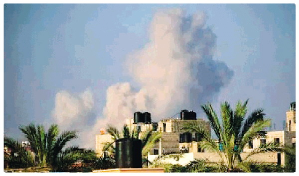 11日,加沙地带中部升起浓烟。(图源:央视新闻)