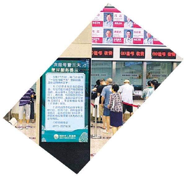 7月3日,记者先后来到市人民医院和市中医医院看到,两家医院门诊大厅的挂号区域均已设置新举措的温馨告示牌。