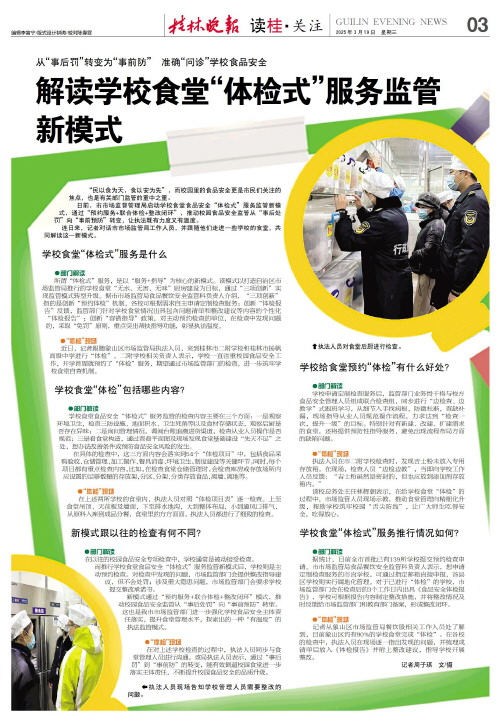 从“事后罚”转变为“事前防” 准确“问诊”学校食品安全 解读学校食堂“体检式”服务监管