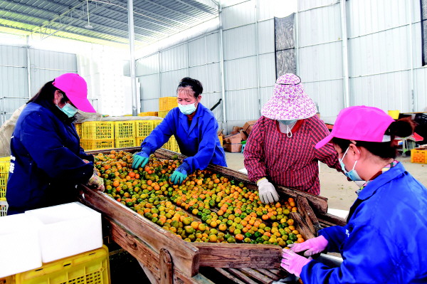 工人在分拣清香蜜桔。记者 李忠波 摄