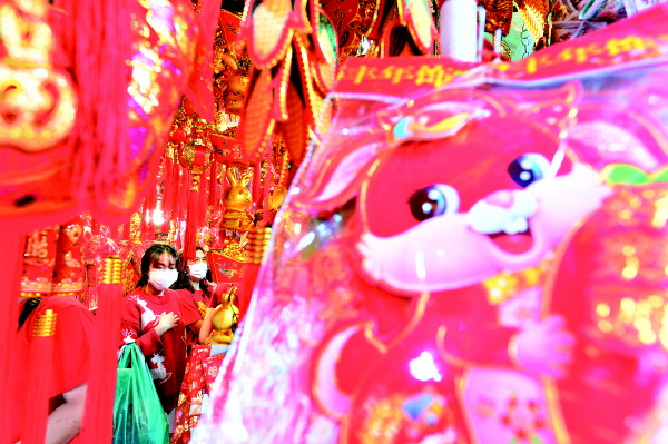 1月16日,顾客在泰国曼谷唐人街选购春节饰品。
