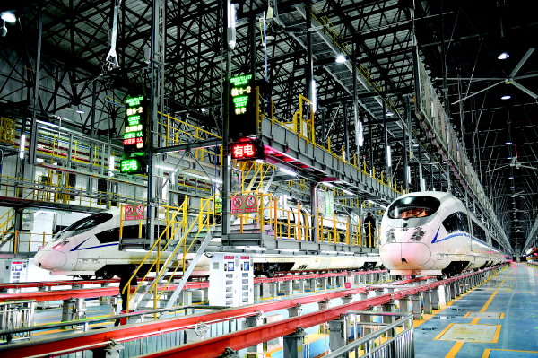 长沙西动车运用所已建成6线检查库、26条存车线,负责动车的停靠、检修和保养。该动车所启用高铁动车数字化、智能化的安全联锁监控系统,实现作业过程智能监护,降低了作业强度和安全风险。