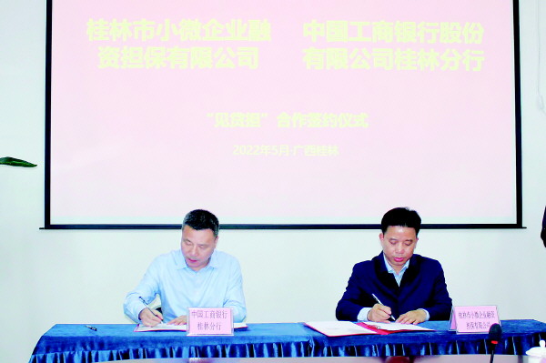 工行桂林分行与桂林小微企业融资担保有限公司签订总对总“见贷担”业务合作协议。