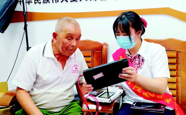 工行桂林分行员工上门为老年客户办理业务。