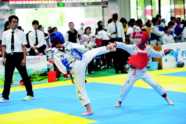 青少年跆拳道比赛。吴生斌 周志国 摄