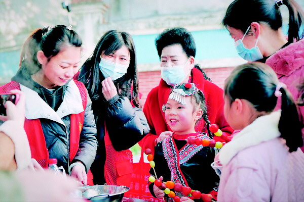 ▲红红的手工灯笼,五彩的气球,亮丽的彩丝……1月31日,七星区东江街道六合社区的居民小广场被装扮得格外喜庆,六合社区在这里开展“民族团结一家亲,携手共庆元宵节”主题活动。各民族居民载歌载舞,并一起动手制作灯笼、冰糖葫芦、汤圆,大家欢聚一堂,感受大家庭的温暖。 记者苏展/摄 通讯员王亚东/文