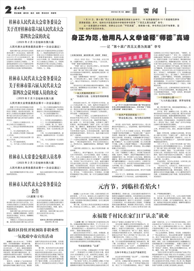 1月31日,第十届广西见义勇为英雄模范表彰大会举行,16名英雄模范和10个英雄模范群体获表彰奖励。其中,桂林市兴安县高尚中学教师李专获得“广西见义勇为英雄”称号。