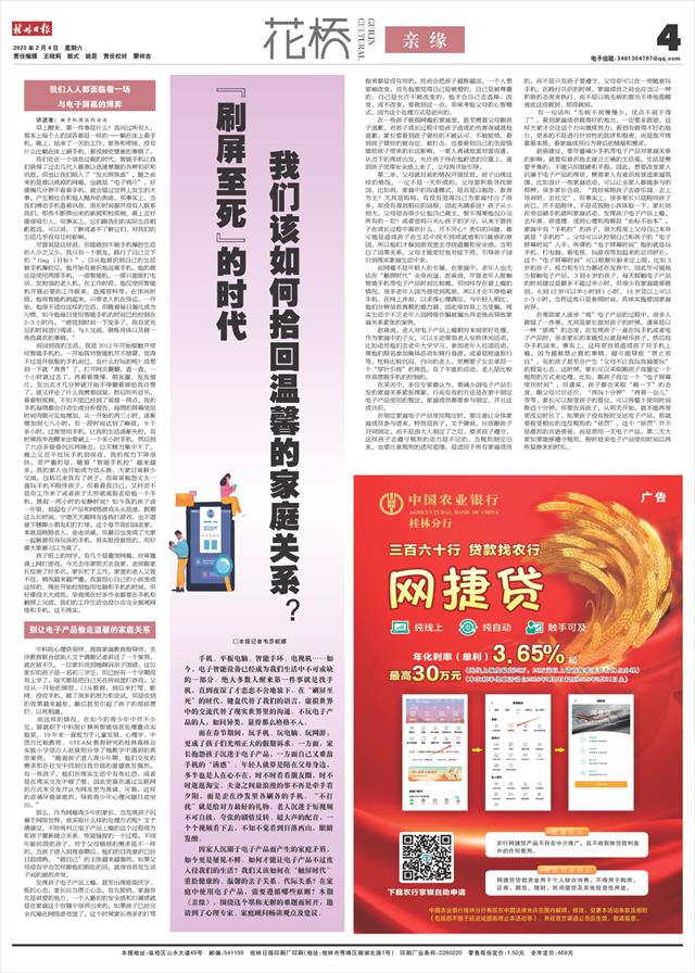 赵焱建议,要尽量减少手机等电子产品对家庭关系的影响,就要有意识地去建立正确的生活观。生活是需要平衡的,不能只用眼睛和手指。因此,想要改变家人沉溺于电子产品的现状,需要家人有意识地营造家庭氛围,比如设计一些家庭活动,可以让全家人都能参与的那种。很多家长会说,“我经常陪孩子去游乐园、去上培训班、去社交”,但事实上,很多家长只是陪同孩子而已,并不是陪伴。不是花钱陪小孩体验一下,家长站在旁边刷手机就叫家庭活动。发现孩子电子产品上瘾,去斥责、讲道理、送到心理机构都是“治标不治本”。家庭中有“手机控”的孩子,很大程度上父母自己本身就是“手机控”。父母可以从控制自己和孩子的“电子屏幕时间”入手。所谓的“电子屏幕时间”指的就是玩手机、打电脑、看电视、玩游戏等加起来的总共时长。这个“电子屏幕时间”可以根据年龄来定上限。比如3岁的孩子,视力和专注力都还在发育中,因此尽可能地少接触电子产品。3到6岁的孩子,每天接触电子产品的时间建议是最多不超过半小时,但很少有家庭能够做到。6到12岁可以半小时到1小时,14岁及以上可以2-3小时。当然这些只是参照时间,具体实施要因家庭而异。