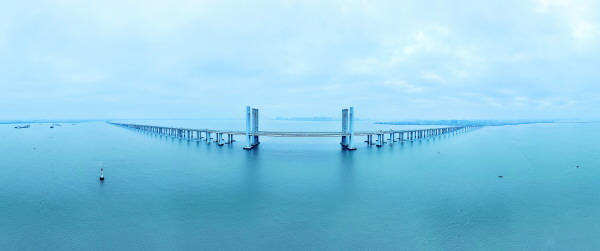▲这是2月4日拍摄的福厦高铁泉州湾跨海大桥(无人机合成照片)。