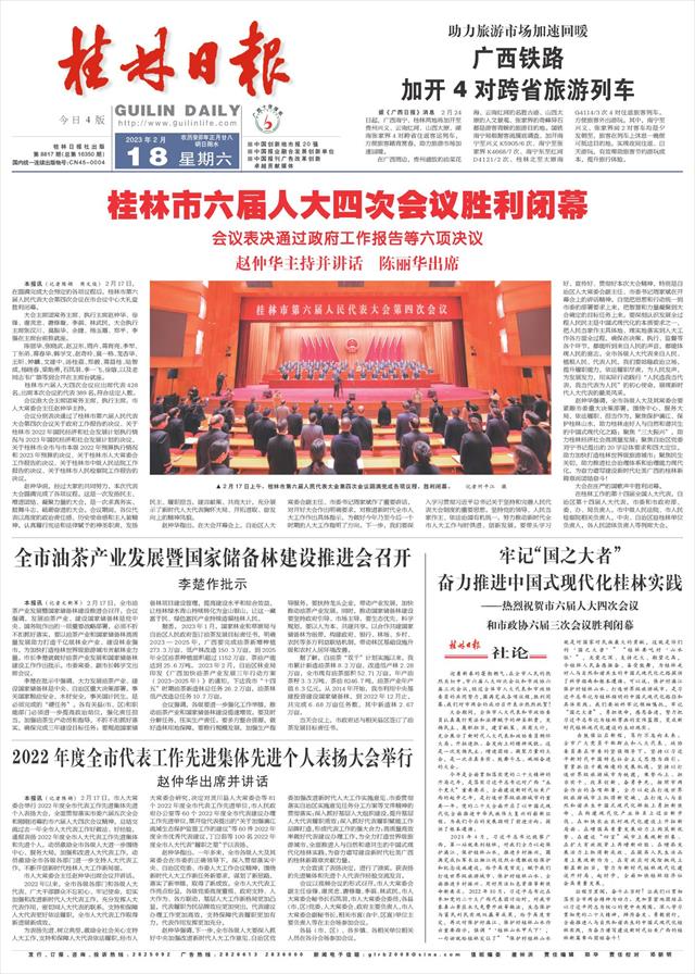 桂林市第六届人民代表大会第四次会议听取和审议了市人民政府市长李楚所作的政府工作报告。会议充分肯定市人民政府2022年的工作,同意报告提出的2023年奋斗目标和工作任务,决定批准这个报告。