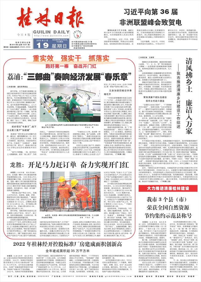 在助力企业复工复产中,荔浦市还通过优化营商环境,出台扶持政策,抓好申请列入2023年区、市级层面统筹推进重大项目76项。截至2月6日,荔浦市72家规上企业进入生产状态,开工率达100%,企业订单增加,第一季度产值预计增长10%。