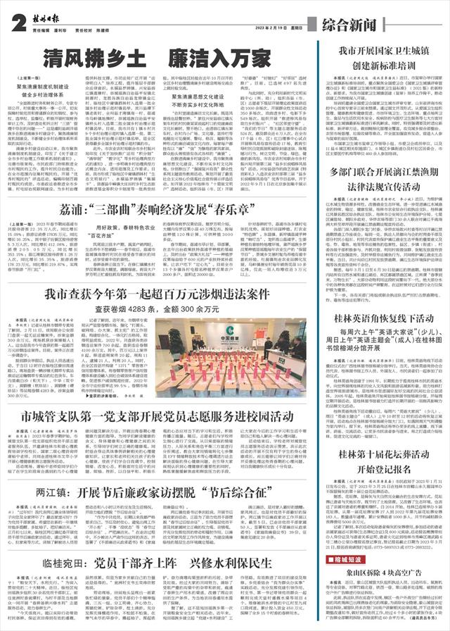 荔浦市旅游资源丰富,是“广西特色旅游名县”,拥有4个国家4A级景区,3个3A级景区,旅游特色鲜明。为推动文旅消费快速升级和旅游行业高质量发展,防疫政策进一步优化后,荔浦市抢抓机遇,围绕春节黄金旅游假期,持续开展“冬游广西”、“冬游荔浦”等系列优惠营销活动,通过微信、抖音、美团等多平台、高密度、叠加式推送宣传荔浦旅游活动信息,线上线下联动发力形成对外营销合力,吸引客源提振旅游消费,引爆春节旅游市场。(下转第二版)