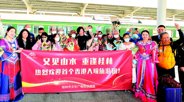 就在“两会”闭幕后的第三天,2月20日下午15时32分,桂林北火车站迎来内地与港澳入出境团队游恢复后,首个由香港赴桂林的入境旅游团队。