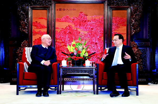 2月24日,国务院总理李克强在北京中南海紫光阁会见国际著名数学家丘成桐先生。新华社记者丁林 摄