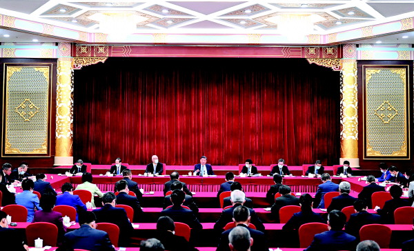 3月6日,中共中央总书记、国家主席、中央军委主席习近平看望参加全国政协十四届一次会议的民建、工商联界委员,并参加联组会,听取意见和建议。中共中央政治局常委、全国政协十四届一次会议主席团会议主持人王沪宁,中共中央政治局常委蔡奇、丁薛祥参加看望和讨论。新华社记者谢环驰 摄