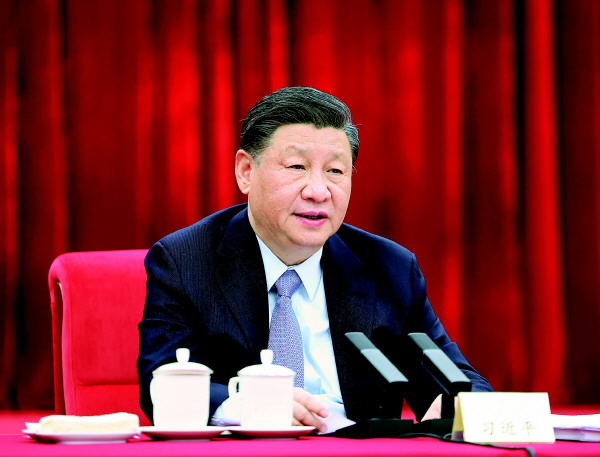 3月6日,中共中央总书记、国家主席、中央军委主席习近平看望参加全国政协十四届一次会议的民建、工商联界委员,并参加联组会,听取意见和建议。新华社记者鞠鹏 摄