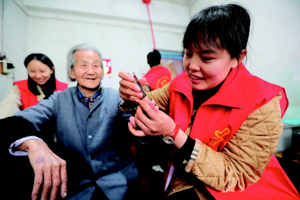 “奶奶,我来帮你剪指甲。”“好好好,你们真好。”这样温情的对话,来自90岁的申奶奶家中。日前,由秀峰区秀峰街道解东社区、桂林市金融团工委等组成的多支志愿者服务队,集中开展“学习雷锋 奉献他人 提升自己”新时代文明实践活动,到社区的独居老人、残疾人家庭开展慰问、义务打扫卫生等服务。记者陈静 摄
