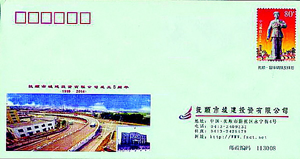 2002年10月发行的《雷锋同志塑像》普通邮资信封1枚(图4),邮资图为雷锋穿着棉军装,身背冲锋枪,手握《毛泽东选集》在昂首阔步前进的全身塑像。