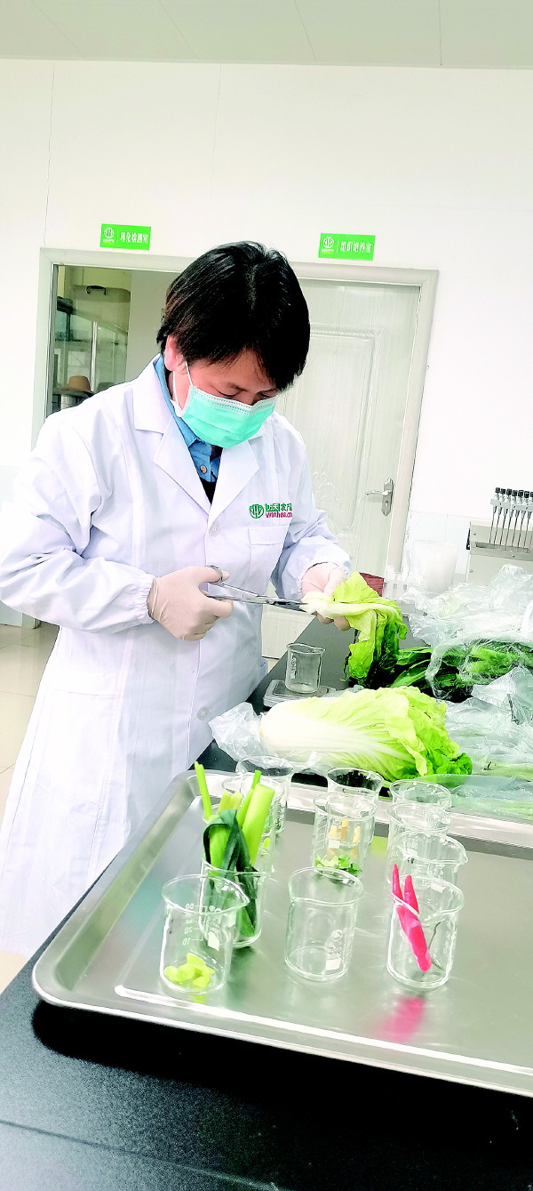 桂林万禾市场管理有限公司质检中心的工作人员,正在对抽样农产品进行农药残留检测工作前的准备工作。记者秦丽云 摄