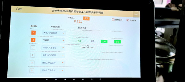 把所需检测农产品抽样后,通过专用的快检一体机进行检测。等检测结束,屏幕上显示检测结果为“合格”,则可自动输出一张桂林市食用农产品合格证A证。记者秦丽云 摄