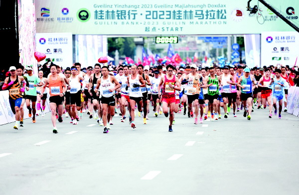 “桂林,我来了”“一起加油”……26日上午,在2023桂林马拉松起跑线前,广大选手兴奋地为自己加油鼓劲,做着各式各样的“表情包”,表达对桂林的喜爱之情。随着发令枪响,选手们纷纷冲出起点,大家尽情奔跑欢呼,开启了精彩纷呈而又身心愉悦的桂马之旅。