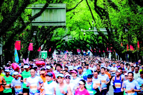 3月26日,3万名马拉松爱好者奔跑在春意盎然的桂林。记者何平江 摄