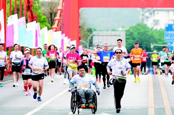 一些身体不健全的选手用坚强的毅力诠释着马拉松的拼搏精神。 记者何平江 摄