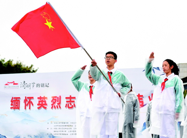 ▲4月4日,少先队员代表在启动仪式上高唱《我们是共产主义接班人》。 当日,“清明节的铭记——缅怀英烈志 创造新伟业”主题教育系列活动启动仪式在中国人民抗日战争纪念馆举行。 新华社记者张晨霖 摄