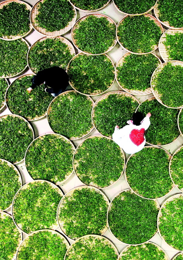 ▲茶商在茶叶加工厂对茶叶进行通风处理,以确保茶叶品质。