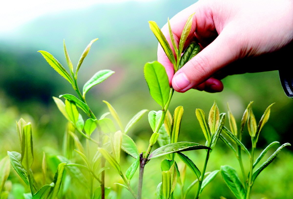 “采摘青叶10元一斤,一个人一天能摘10斤左右,一天能挣到100元,而且在家门口就业让我们很安心。”村民李大哥边说边采茶。